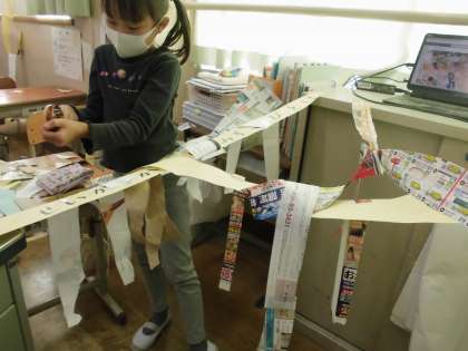 「横につなぐだけじゃなくて、つるしてみると楽しかった」と話している子どもたちが多かったです。