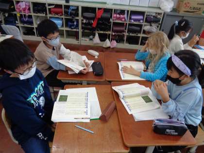 国語科では,話し合い活動を進めています。