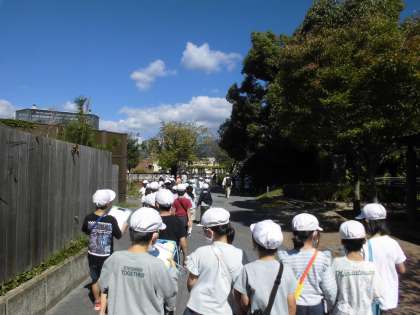 お弁当を食べた後は、1年生と2年生でグループになって、クイズラリーをしました。「キジはオスとメスで顔の色が違うんだね。」「トラの前でずっと鳴くのを待ってたよ。」「たくさん動物が見られて楽しかったよ。」と、色々教えてくれました。動物について詳しくなったようです。