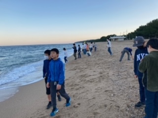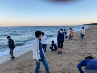 朝の浜辺の散策をしました。