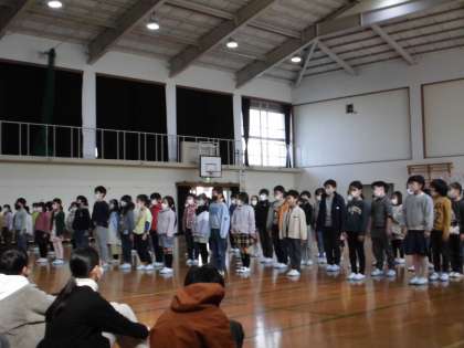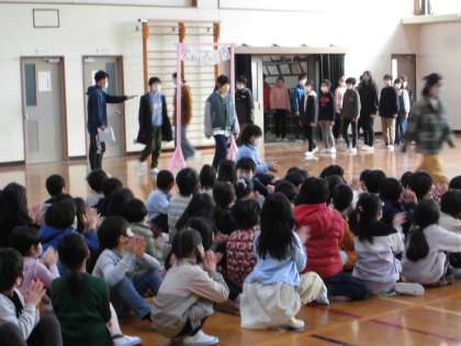 6年生を送る会が体育館で行われました。全校で集まることはできなかったのですが、低学年・中学年・高学年にわかれて、6年生に向けて出し物をしました。