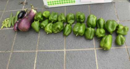 ピーマンがいっぱいできました。来てくれたお友達、