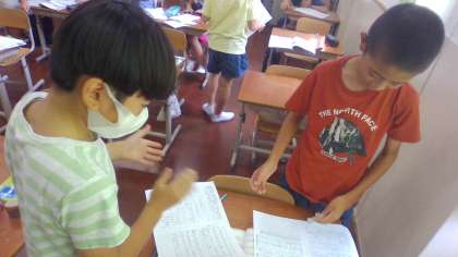 重なりや、くり返し、呼びかけと答えなどの要素に気をつけて学習することができました。