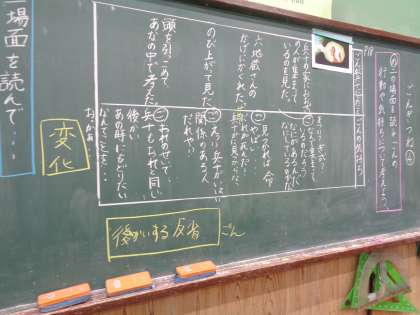 それぞれの場面での「ごんがしたこと」から、ごんの心情の変化を考えました。