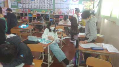 この旋律の変化をもとに、「静かに歩いていたけれど、見つかって逃げ出した」「最初はおそるおそる進んでいたけど、最後は勇気をもって戦っている」などの意見が出ました。