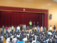 本日、全校で体育館に集まり、感謝の集いを行いました。
