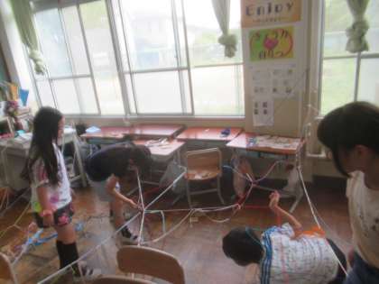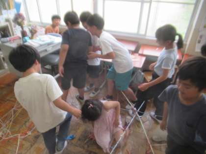 ほかのグループの工夫を見て、教室のいろんな場所で楽しそうな声が響いていました。