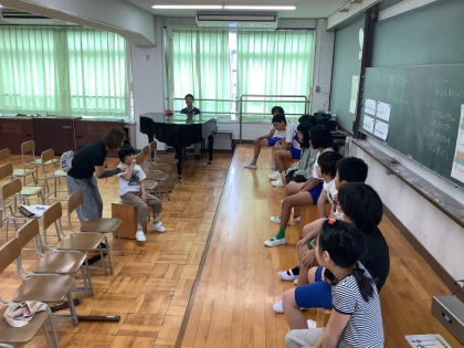 音楽科の学習で「ミッキーマウスマーチ」の曲に取り組んでいます。喜びや怒り、悲しみに応じてどのようなテンポや強さでリズム打ちをすればよいのか考え練習をしました。その後、それぞれ感情ごとにグループで分かれて発表し、お互い工夫したところを伝え合いました。