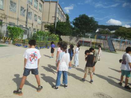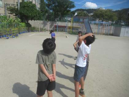 時間を見つけて、運動場でかげおくりをしてみました。