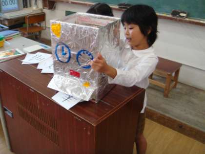 『カンジーはかせ』の作った機械に,かん字をいくつか入れると