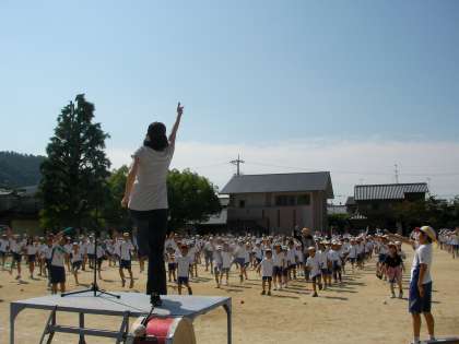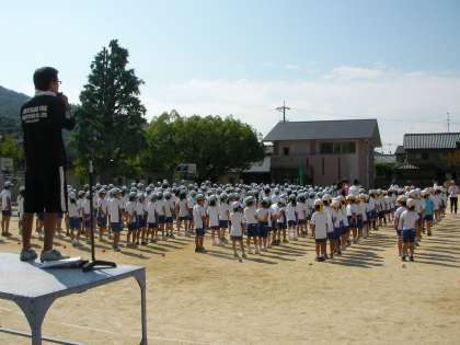 いえ,ちがいます。今日は,1回目の運動会の全校練習です。