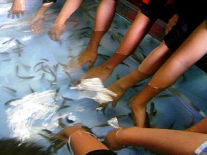 マンボウを見たり,ドクターフイッシュに手をきれいにしてもらったりしていました。
