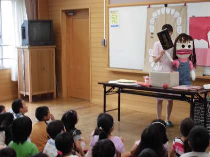 歯ブラシの持ち方を教わり,丁寧に磨くと,歯がツルツルとしてとっても気持ち良さそうでした。