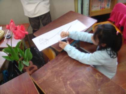 花びらをしっかり見て、丁寧に、真剣にかいている様子がとてもかがやいていました。