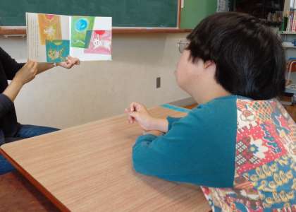 今朝のよもよもタイムは,図書ボランティアの方が読み聞かせに来てくださいました。