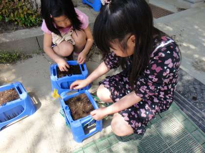 3年 種まき(オクラ・ホウセンカ)