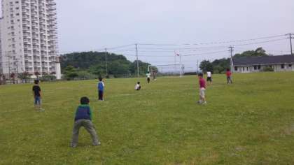 サッカーやフリスビー、芝生の坂を転がったり、散歩したりと、元気一杯活動していました。