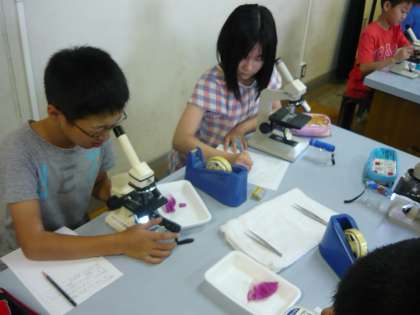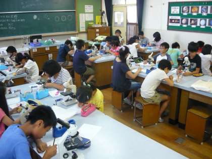 アサガオの花粉の観察をしました。丸い形にたくさんのとげのようなものが生えています。顕微鏡の使い方も少し慣れてきて,みんな熱心に観察していました。