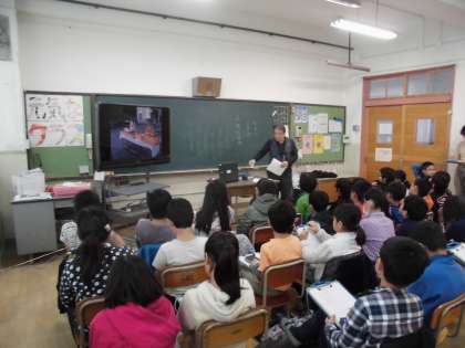 本日、地域の方にお越しいただき、北白川天神宮の『高盛御供』についてお話を聞きました。子どもたちにとっては校区内にある身近な神社ですが、このようなお祭りがされていることを初めて知った子もいて、熱心に聞き入っていました。お供えの種類や作り方、その意味など写真を見ながら説明があり、たくさんのことを知ることができました。来週には実際に北白川天神宮に行く予定なので、見学でさらに学習を深めてもらいたいと思います。
