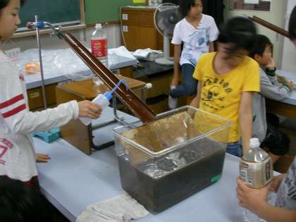 「地層はきっと流れる水が関係している?」という予想のもと,