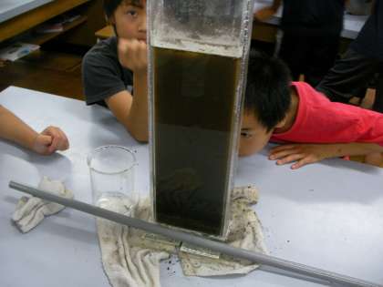 「ちゃんといろいろな層になっている。」「流れこみ方によって積もり方がちがう。」