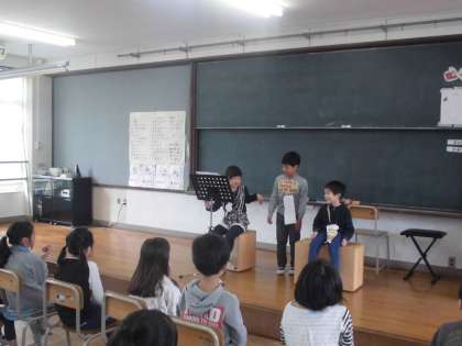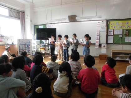 昨日は2−3,今日は2−2と交流をしました。2年生が国語の「お手紙」というお話の学習のまとめとして音読や音読劇をしてくれました。登場人物になりきる姿やナレーター,気持ちを込めて音読する姿がとても素晴らしかったです。最後に感想を言い合ったり,ゲームをしたりしました。