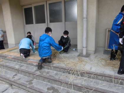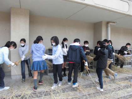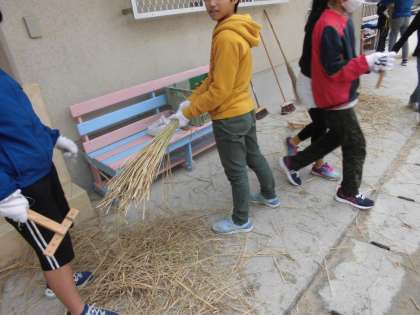 毎年,総合的な学習の一つとして北白川小学校の高学年の伝統になっている『わら細工』。