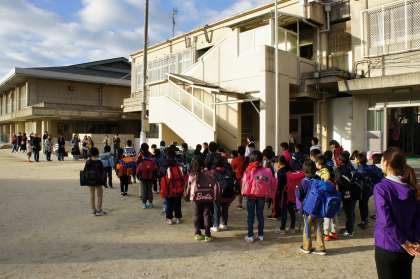 今日から2泊3日の野外宿泊活動みさきの家に出かけます。みんな元気で出発しました。