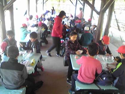 バスの中で楽しく過ごして無事みさきの家に到着。早速お弁当を元気に食べていました。