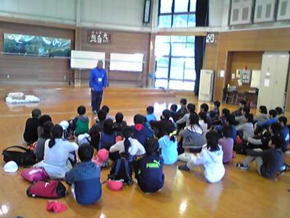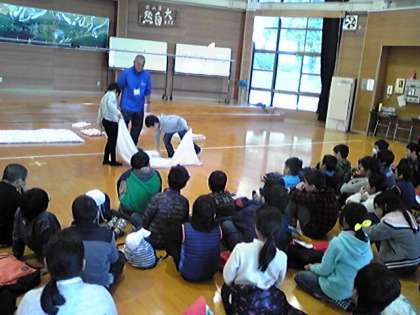 プレイホールでお風呂や寝具の説明を受けました。とても上手にできたと,褒めてもらえました。