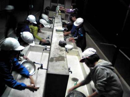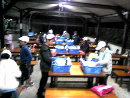 みんなお腹いっぱい食べてデザートもあって大満足。協力して後片付けをしています。