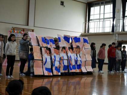 今日は6年生を送る会があり,5年生は6年生との思い出を24枚の大きな絵で表し,これまでの感謝の気持ちを伝えました。