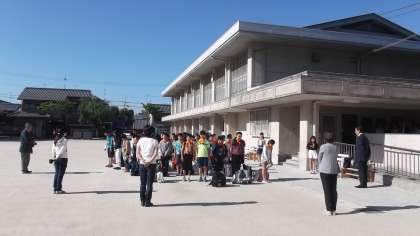 本日,6年生が姫路・淡路島方面に向けて出発しました。とても良い天気になりました。1泊2日の「修学旅行」。すてきな思い出をつくってきてほしいと思います。出発式は子どもたちの自主的な司会のもと,進められました。