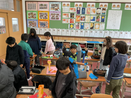 コロコロガーレの作品の鑑賞をしました。友達の作品を遊ばせてもらって、面白さや工夫をたくさん見つけました。