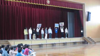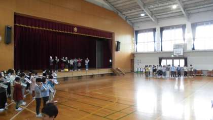 これまでに音楽科や国語科で学習してきたことを発表しました。1年生やたくさんの保護者の方たちが見に来てくれて、みんな緊張しながらも、堂々と大きな声で発表することができました。元気な歌声も、体育館いっぱいに響いていました。