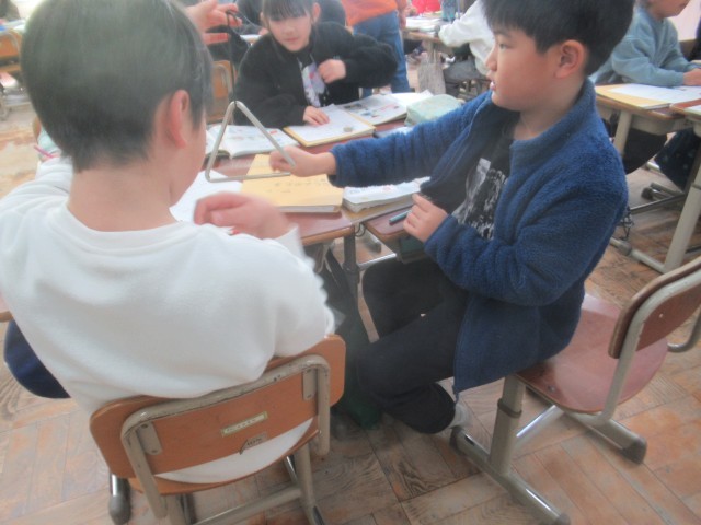 トライアングルを使って、音が鳴るとき物はどうなっているのかを調べました。