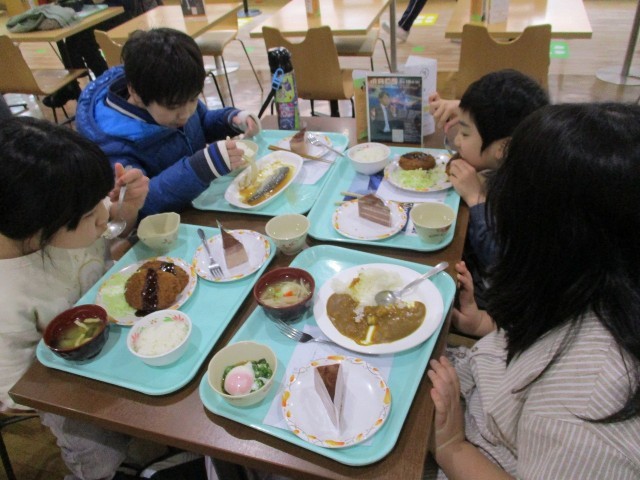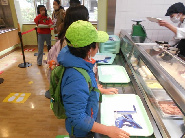 「小さな巨匠展」に行った後は、京都大学北部食堂にて昼食をとりました。自分でメニューを注文してトレイで運び、一人でお金を支払いました。いつもはお家の方とお出かけしている子も、「一人でがんばるぞ」とやる気いっぱい!とても良い社会経験ができ、自信がついたと思います。「とってもおいしい!」「また食べたい!」とニコニコ笑顔の子ども達でした。ご協力いただいた食堂の皆様、ありがとうございました。