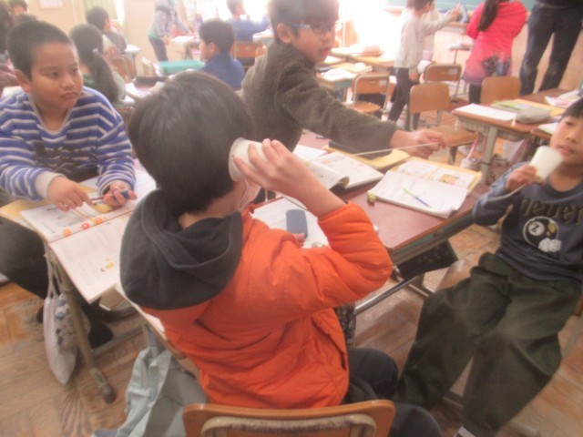 糸電話を使ったことのある子も、初めて使う子も楽しそうに実験をしていました。