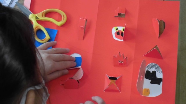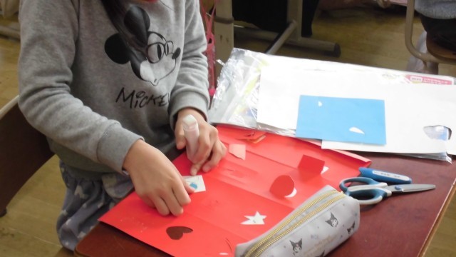 図工科「まどをあけたら」の学習を進めています。まずは、カッターナイフを使って、いろんな形のまどをあけることを楽しみました。すてきな形のまどができたので、次はまどからどんなせかいが広がっているのかを想像し、作品作りを進めています。完成が楽しみです。