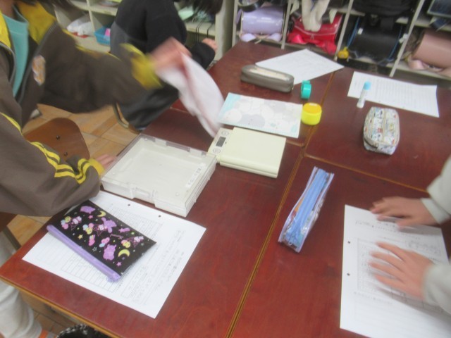 算数で学習したときに使ったはかりよりもより正確な重さが量れる電子天秤。