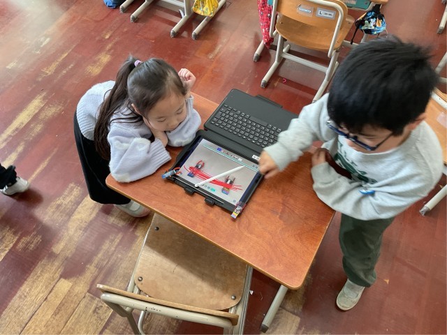 一人ひとり自分の「すきまちゃん」を作って、教室の中にあるすきまを探して写真を撮りました。友だちと相談しながら写真を撮ったり、お話を考えたりすることができました。