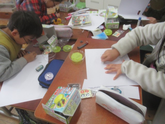 磁石の性質の学習が終わったので学んだことを活かしておもちゃランドを作っています。