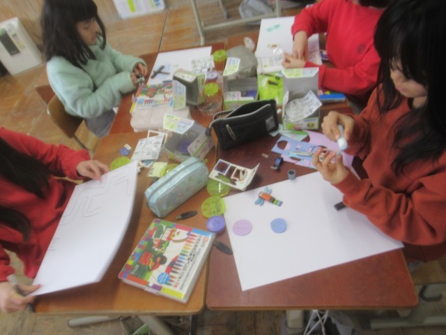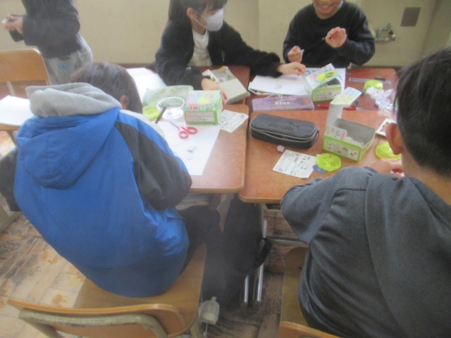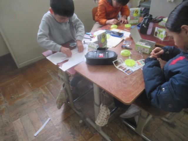 付属の画用紙を切ったり、紙に迷路を書いたりして制作しました。