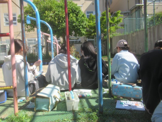 ほかにも雲一つない青空を描く子や、グレープフルーツの木を描く子、正門近くの八重桜を描く子…