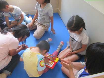 人権学習で学んだえのき学級をもっと知るために休み時間にえのき学級にお邪魔して色々な所を調べたり,えのき学級の友だちと遊んだりしています。