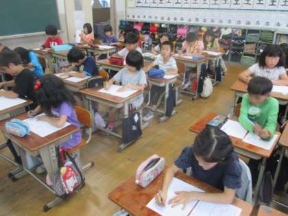 書写では,硬筆書写展に向けて練習を始めました。本番に向けてこれからベーシックなどの時間を使って練習を積み重ねます。