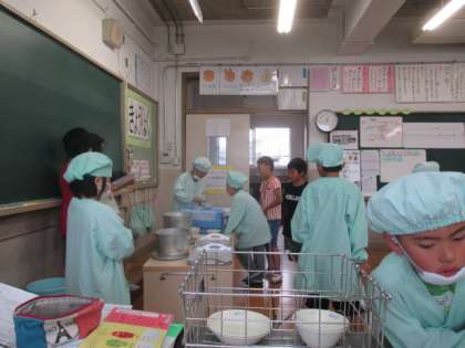 今日は,中学年集会が伸びてしまい少し給食の時間が遅れました。そのため当番の人だけでなく当番以外の人までお手伝いをしてくれました。