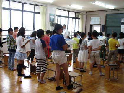 きれいな声で歌っています。音楽室から学校中に歌声が響いていました。