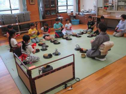 お茶を点て,お菓子をいただくだけでなく,いろいろな作法も学んでいます。少しずつ身に付けて,日本の伝統文化の良さを感じてほしいと思います。