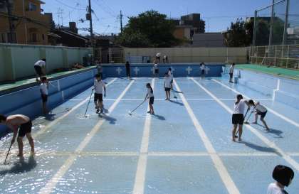 来週から始まるプールでの学習に向けて,プール清掃をしました。
